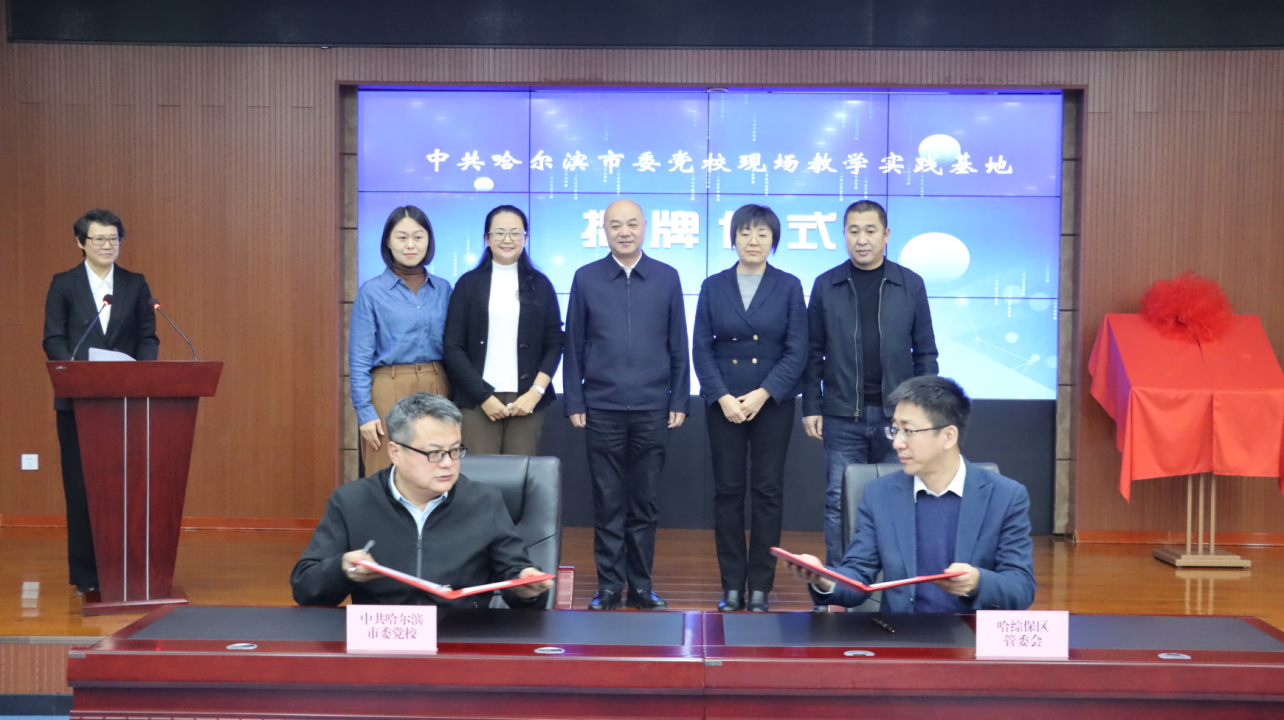 黑龍江經(jīng)濟(jì)網(wǎng)訊(記者商祺)12月13日,哈爾濱綜合保稅區(qū)與哈爾濱市委黨校舉行現(xiàn)場教學(xué)實(shí)踐基地揭牌儀式,哈爾濱市政府副秘書長、兩區(qū)一體化辦公室主任、哈爾濱綜合保稅區(qū)管理委員會(huì)主任尹承云與中共哈爾濱市委黨校常務(wù)副校長、市行政學(xué)院院長孫蕊共同為現(xiàn)場教學(xué)實(shí)踐基地揭牌。哈爾濱市委黨校副校長孫昭與哈爾濱綜合保稅區(qū)管理委員會(huì)常務(wù)副主任邸凱代表雙方簽署合作協(xié)議。