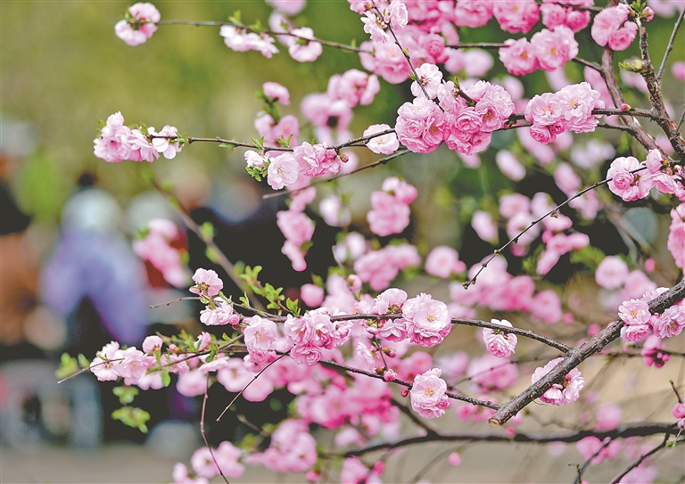 近期,哈爾濱市街頭、廣場(chǎng)、公園里種植的榆葉梅陸續(xù)開花,有粉色的,有紅色的,一團(tuán)團(tuán)一簇簇,綻放的花朵吸引人們駐足觀賞、拍照。