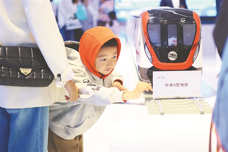 第三十三屆哈洽會成為了孩子們長見識的窗口。在中國中車的展臺前,孩子們的目光被一組組精美的列車模型所吸引?!拔覐膩頉]有見過這么多不同種類的列車模型”“我最喜歡的是和諧號,它看起來科技感十足。”能同時看到動車、和諧號還有地鐵并排擺在一起,孩子們興奮不已。