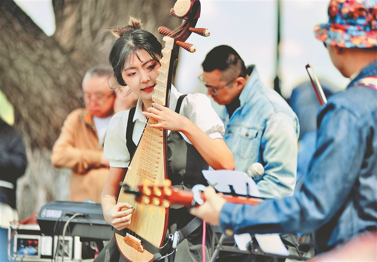 進入夏季,每天都有眾多音樂愛好者來到江邊演出。他們自備音箱,自彈自唱,為“音樂之城”哈爾濱“代言”,成為江邊一道獨特的風(fēng)景。