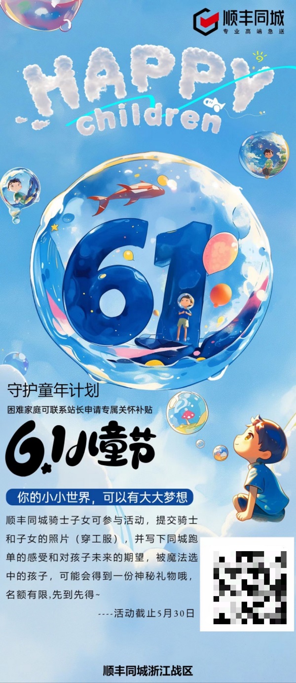 為慶祝“六一”兒童節(jié)的到來,順豐同城在全國范圍內(nèi)精心舉辦了系列活動。“六一”前夕,為體恤山區(qū)留守兒童及困難家庭兒童,順豐同城在東北、廣州、佛山為孩子們送上了別具心意的禮物和關(guān)懷;為了給“騎士”和孩子們創(chuàng)造更多美好回憶,順豐同城在西北、深圳、東莞開展了形式多樣的線下騎士親子活動,在河南、湖北、湖南聯(lián)合當(dāng)?shù)佧湲?dāng)勞舉辦了多場麥當(dāng)勞親子嘉年華活動,并在浙江推出“守護童年計劃”線上活動,“騎士”可通過分享親子合照、寫下對孩子的成長寄語贏取獎勵。此外,“六一”兒童節(jié)當(dāng)天,順豐同城還發(fā)起“曬親子合影,贏神秘好禮”線上活動,“騎士”通過視頻號發(fā)布親子照片并贏取神秘大禮。