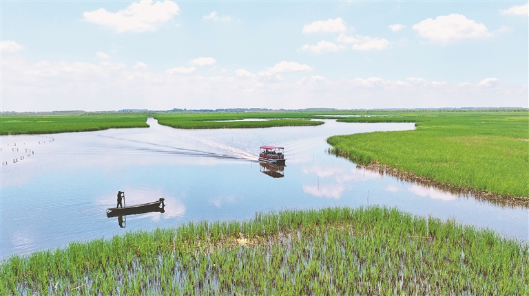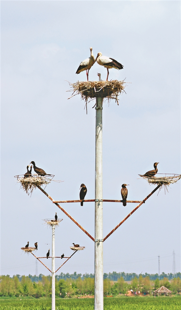 作為松花江流域保存完整、濕地多樣性特征顯著的天然遺跡,千鶴島濕地水草茂盛,魚類繁多,成為鳥類繁衍生息的天然場所。據(jù)風景區(qū)工作人員介紹,由于濕地內植被資源保護完好,每年都吸引大量候鳥來此繁衍生活,且數(shù)量逐年增加。特別是今年搭建38個人工鳥巢后,濕地內的東方白鸛數(shù)量達到300余只,成為國內數(shù)量最多的棲息種群。