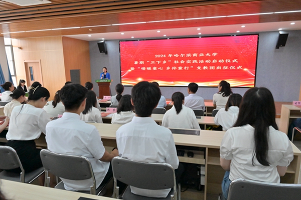 啟動儀式上,哈爾濱商業(yè)大學黨委副書記姜國峰在致辭中勉勵即將出征的大學生志愿者,要心懷學習之心,在實踐中堅定理想信念。堅持在實踐中向前輩學習、向人民群眾學習,深刻感悟習近平新時代中國特色社會主義思想的真理偉力、實踐偉力。要心懷服務之心,在實踐中不斷歷練成長。扎根基層、腳踏實地、知行合一,以實際行動服務于人民、服務于社會。要心懷報國之心,在實踐中持續(xù)作出貢獻。做胸懷“國之大者”,爭做科技創(chuàng)新、鄉(xiāng)村振興、社會服務等各領域的排頭兵和生力軍。