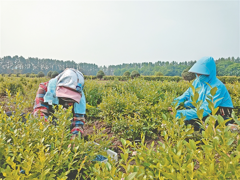 藍(lán)莓進(jìn)入采摘旺季。本報(bào)記者 李健攝