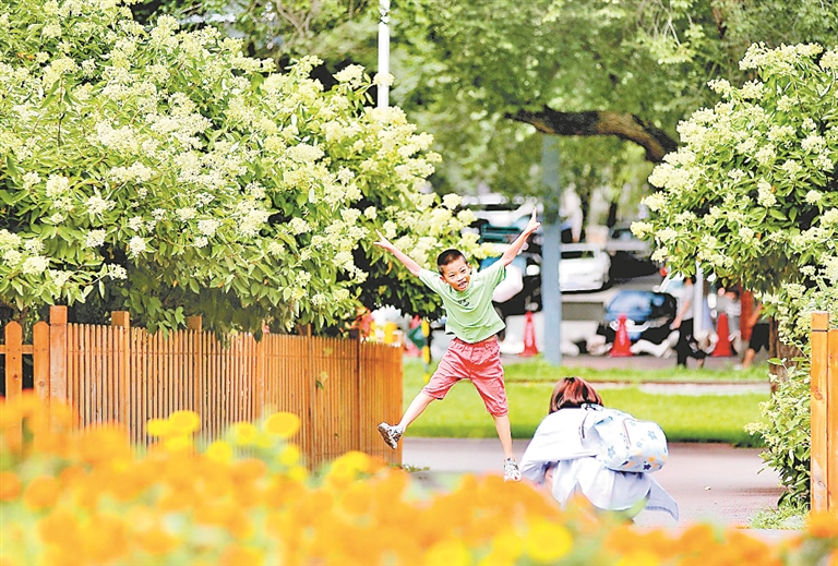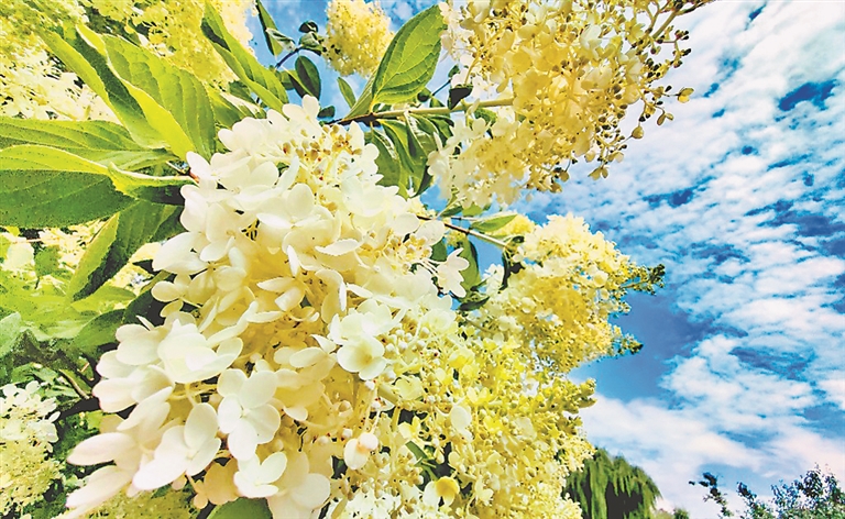 29日,哈爾濱市兒童公園內(nèi),數(shù)十株圓錐繡球正陸續(xù)開花。這些美麗的花朵為夏日冰城再添一道風景,吸引了許多游客前來觀看、拍照。