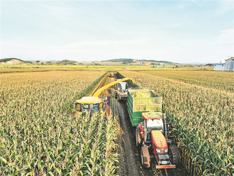 本報訊(崔倫震 記者劉暢)8月28日,在北大荒集團(tuán)黑龍江八五一一農(nóng)場有限公司第二管理區(qū)青貯玉米地塊,一臺大型青貯玉米收割機(jī)正在進(jìn)行收獲作業(yè),滿載青貯玉米的大馬力拖拉機(jī)一輛又一輛交替轉(zhuǎn)運,井然有序,一派繁忙的豐收景象。