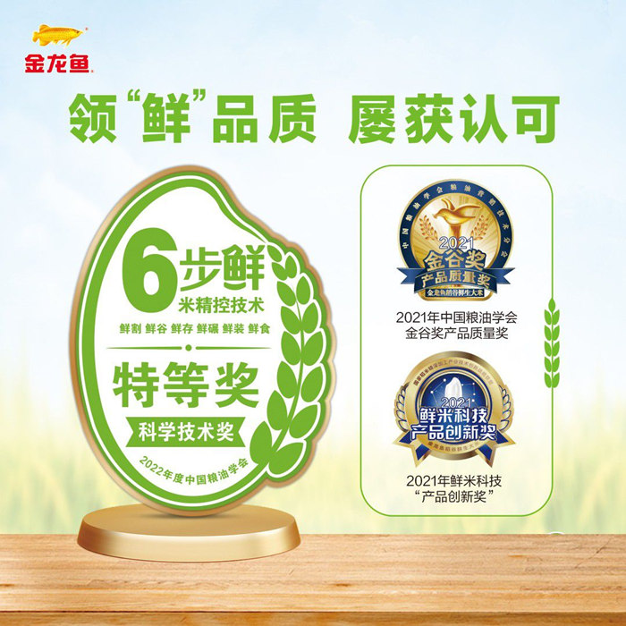 這不是金龍魚(yú)6步鮮大米第一次獲得金獎(jiǎng)殊榮。6步鮮大米采用的稻谷“6步鮮米精控技術(shù)”創(chuàng)新體系開(kāi)發(fā)及產(chǎn)業(yè)化,在2022年獲得了中國(guó)糧油學(xué)會(huì)科學(xué)技術(shù)獎(jiǎng)特等獎(jiǎng)。這也是中國(guó)糧油學(xué)會(huì)科學(xué)技術(shù)獎(jiǎng)當(dāng)年惟一一個(gè)“特等獎(jiǎng)”項(xiàng),含金量可見(jiàn)一斑。