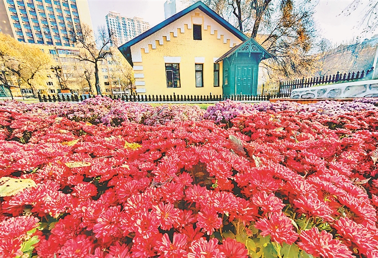 近日,哈爾濱市南崗區(qū)花園街旁,游客在修繕一新的“黃房子”前拍照留念。在滿(mǎn)地落葉襯托下,這些黃墻紅頂?shù)臍v史建筑更顯厚重感。房子周?chē)O(shè)有休閑座椅、歐式路燈、花壇、綠地等,方便人們散步、賞景。本報(bào)記者 蘇強(qiáng)攝