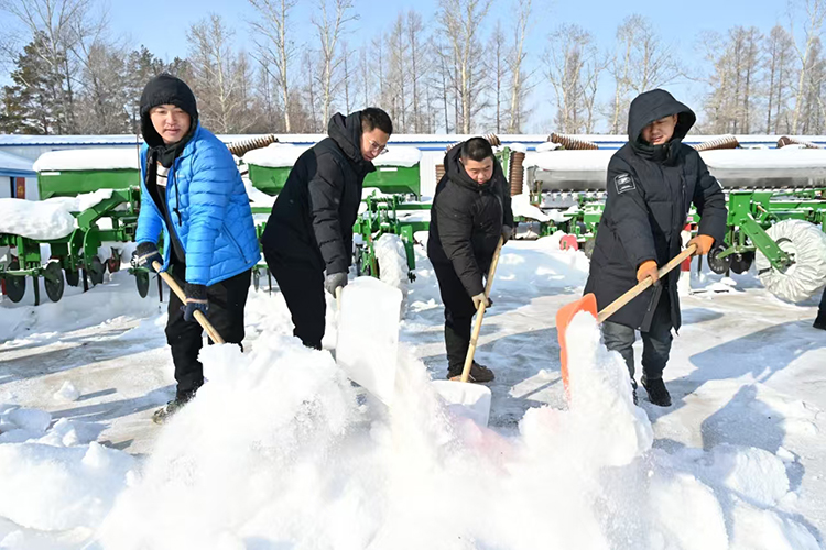 “眼下天氣逐漸回暖,為了避免氣溫上升造成積雪融化而形成冰層,影響后續(xù)工作,我們采取鏟車清雪、人工清邊的措施,確保將農具場積雪徹底清理干凈,為農機具檢修提供良好環(huán)境?!惫芾韰^(qū)工作人員說。