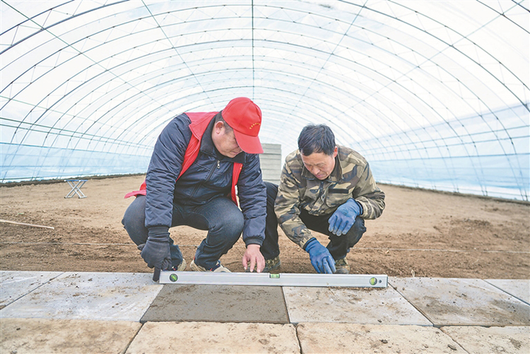 “這個(gè)磚要這么擺,留出五個(gè)盤(pán)的空地,機(jī)器人收盤(pán)擺盤(pán)的時(shí)候一定要有足夠的距離。”最近幾天,在種植戶閆鵬的超早育秧大棚內(nèi),黨員先鋒小隊(duì)隊(duì)員魏可欣一邊教授種植戶怎么改造大棚適應(yīng)新機(jī)器,一邊動(dòng)手幫種植戶干起了農(nóng)活。不僅魏可欣一名黨員,從備春耕工作開(kāi)始以來(lái),十個(gè)管理區(qū)各自組建特色黨小組,明確分工,協(xié)同配合,深入田間地頭,送服務(wù)、送技術(shù)、送政策,在黨員的精準(zhǔn)幫助下,種植戶也有了更多的技術(shù)選擇?!岸嗵澚怂麄兊募夹g(shù)指導(dǎo),讓我深入了解了我種植水稻的品種特點(diǎn),我也能科學(xué)地控制水肥配比,實(shí)現(xiàn)精準(zhǔn)管理,這對(duì)我來(lái)說(shuō)像是吃了一顆‘定心丸’,對(duì)今年的糧食產(chǎn)量更有信心了。”閆鵬看著身邊忙碌的黨員,也更加鼓足了干勁。