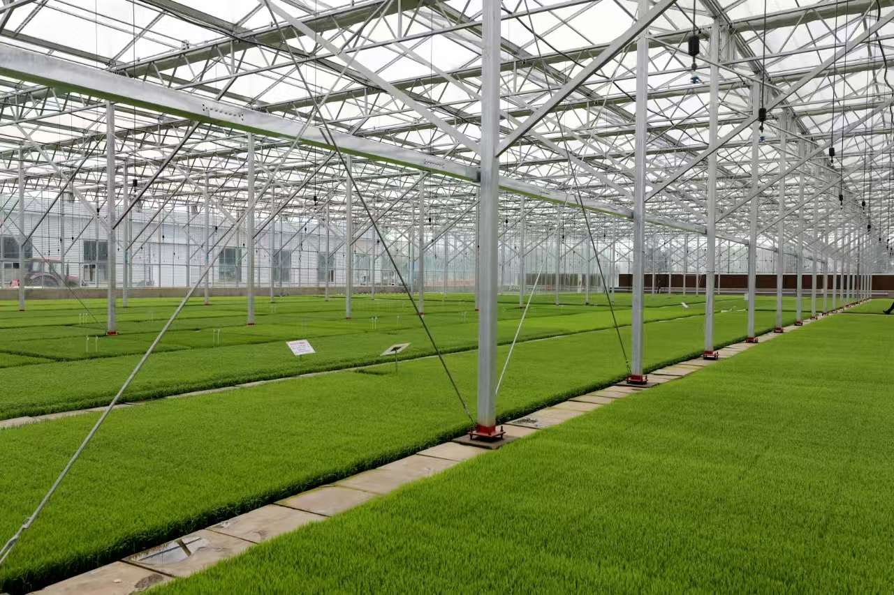 盛昌種子繁育有限公司高級農(nóng)藝師盧國臣介紹,秧苗長得好,離不開智能化育苗溫室這個“智能管家”。棚室里的電子顯示屏可以實時監(jiān)測到溫度、濕度、光照、土壤酸堿度和微量元素等數(shù)據(jù)信息,風控系統(tǒng)、采光系統(tǒng)、噴淋系統(tǒng)隨時進行智能調(diào)控,5G技術的應用使大棚的管理更加高效、精準,確保秧苗始終處于最適宜的生長環(huán)境中?!耙酝鶄鹘y(tǒng)育秧,主要靠人工經(jīng)驗判斷,效率低不說,還容易受到天氣等因素影響,導致秧苗質(zhì)量參差不齊。現(xiàn)在有了這套智能化育秧系統(tǒng),不僅節(jié)省了大量人力,而且育出的秧苗出芽率高、生長整齊,為水稻高產(chǎn)打下了堅實基礎?!北R國臣說。