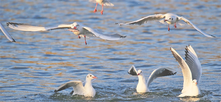 近日,大群的紅嘴鷗出現(xiàn)在哈爾濱市城區(qū),松花江上翅羽歡騰,江畔賞鷗成一景。