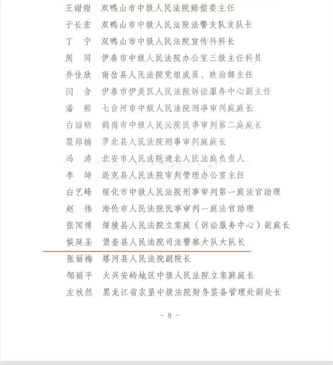 望奎縣人民法院1名個人獲評“全省法院先進個人”稱號