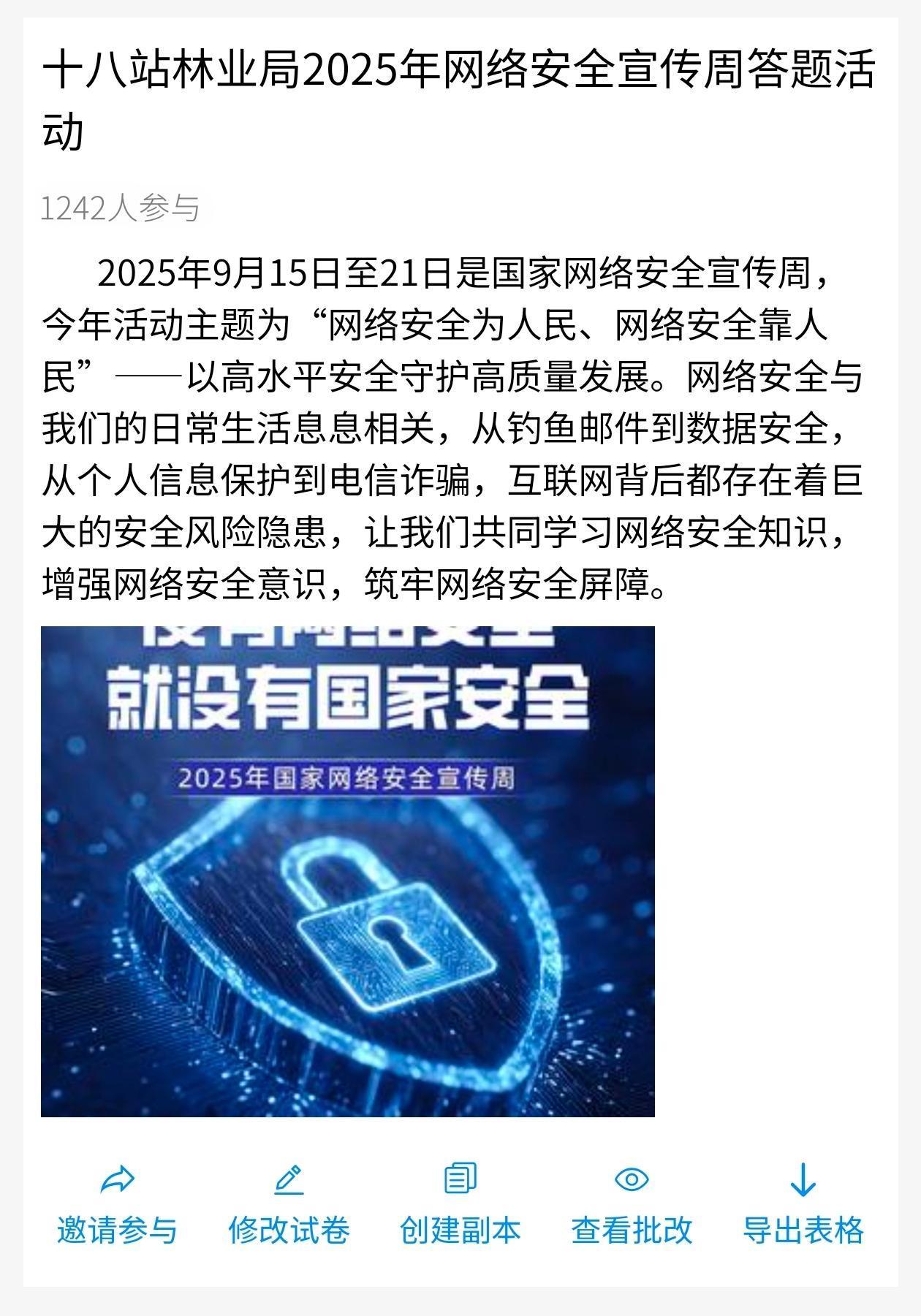 為進(jìn)一步擴(kuò)大宣傳覆蓋面,在公眾號(hào)上推出“網(wǎng)絡(luò)安全知識(shí)有獎(jiǎng)答題”活動(dòng),涵蓋了《網(wǎng)絡(luò)安全法》《個(gè)人信息保護(hù)法》、密碼安全、辦公環(huán)境安全等多個(gè)方面,在互動(dòng)中深化了對(duì)網(wǎng)絡(luò)安全知識(shí)的理解與掌握,形成了線上線下協(xié)同推進(jìn)的宣傳合力。