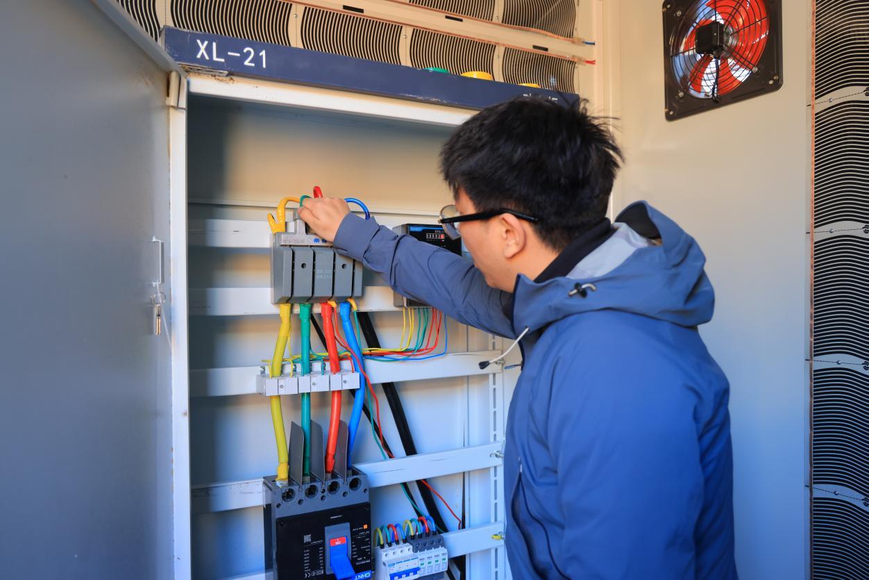 “這是一套完全獨立的孤島型微電網(wǎng),它不與大電網(wǎng)相連,通過自主發(fā)電與儲能實現(xiàn)供電。我們配置了150千瓦光伏陣列、兩臺10千瓦風(fēng)力發(fā)電機組,并配套低溫適配型儲能電池及保溫系統(tǒng),同時搭載了協(xié)調(diào)運行與能量管理系統(tǒng),可實現(xiàn)24小時連續(xù)、穩(wěn)定供電?!惫枮I工業(yè)大學(xué)電氣工程及自動化學(xué)院博士研究生周洋介紹。