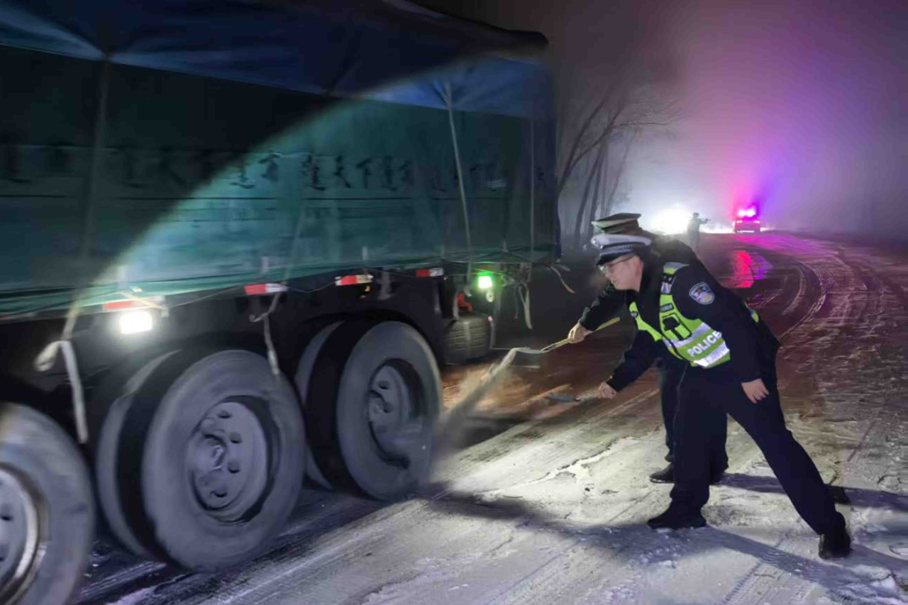 黑龍江經(jīng)濟(jì)網(wǎng)訊(李寶 劉昌龍 記者梁新立)近日,五大連池市轄區(qū)遭遇持續(xù)低溫降雪天氣,部分國(guó)省縣鄉(xiāng)道路出現(xiàn)積雪結(jié)冰,大型車輛行駛困難,通行風(fēng)險(xiǎn)顯著升高。為保障道路暢通與行車安全,五大連池市公安局反恐與交巡特警大隊(duì)迅速啟動(dòng)冰雪天氣應(yīng)急預(yù)案,積極應(yīng)對(duì),組織警力開展路面防滑處置工作,全力保障群眾出行安全。