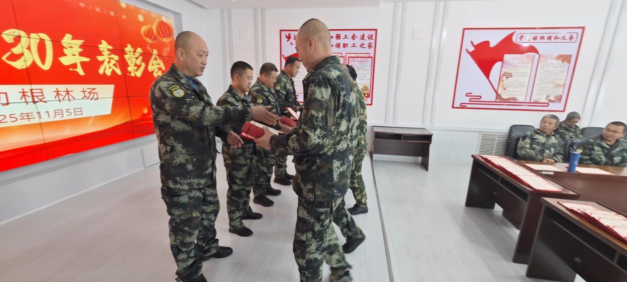 當(dāng)一本本鐫刻著“光榮在崗30年”的證書、一份份承載著林場(chǎng)深情的紀(jì)念品遞到職工們的手中時(shí),全場(chǎng)掌聲雷動(dòng)。這不是普通的證書與禮物,它鐫刻著30載春秋的堅(jiān)守,見證著職工們與林區(qū)共生共長(zhǎng)的歲月,更承載著林場(chǎng)對(duì)他們的由衷感謝與崇高敬意。