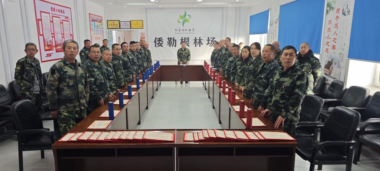 林場(chǎng)班子成員走上臺(tái),與職工們并肩而立,快門按下,定格了這一幀滿是敬意與溫暖的畫面。