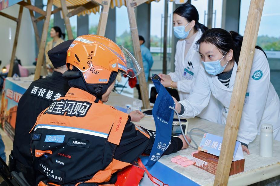 秋冬季節(jié)多發(fā)流感,全國各地、各級工會等主管部門聯(lián)合淘寶閃購,持續(xù)開展暖冬物資發(fā)放、免費體檢等活動。在貴陽、銀川、溫州、武漢等城市,騎士日活動還設(shè)置了專門的體檢車,為騎士提供便捷的健康檢查,在南京、成都等地開展義診。