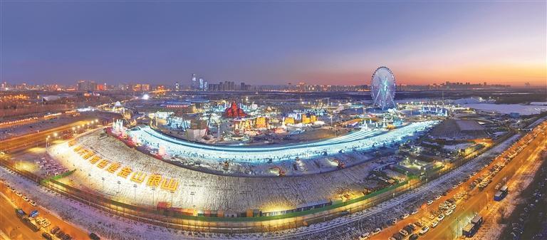 建設(shè)中的哈爾濱冰雪大世界。本報(bào)記者 張澍攝