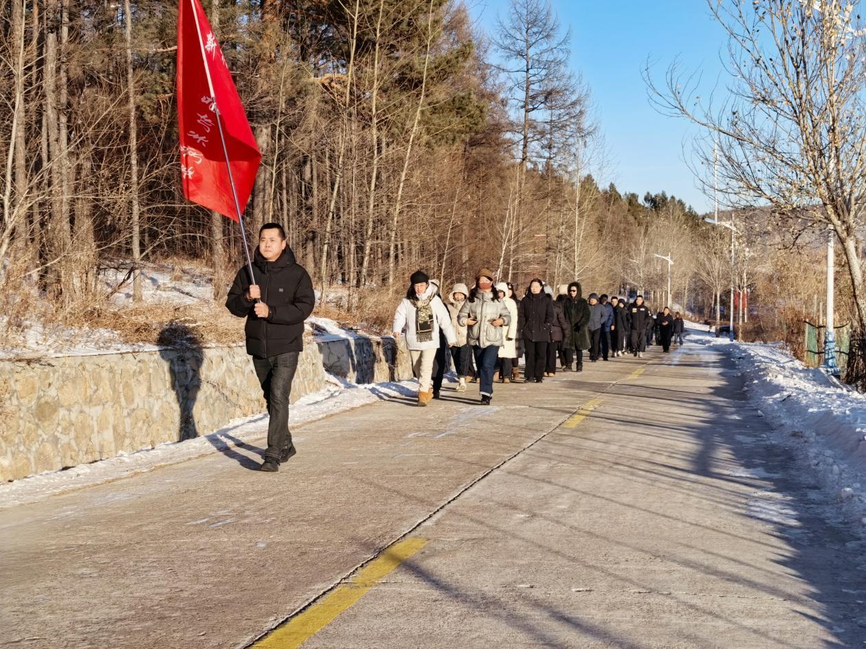 活動中,150余名林業(yè)局機(jī)關(guān)干部職工在原林園門前集結(jié)。隨著出發(fā)指令下達(dá),徒步隊伍沿著預(yù)設(shè)路線有序前行,有經(jīng)驗豐富的職工帶頭穩(wěn)步前行,不時提醒身旁同事注意腳下安全。年輕干部們活力滿滿,時而相互鼓勁,時而駐足欣賞沿途銀裝素裹的冬日盛景,盡管天氣寒冷,但絲毫未影響大家的參與熱情。經(jīng)過兩個小時的徒步,大家攜手并進(jìn)順利抵達(dá)終點。