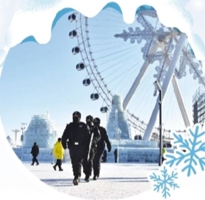 新年伊始,黑龍江省哈爾濱市氣溫降至零下20攝氏度,“哈氣成冰”在這里更加具象化了。在冰雪大世界園區(qū)內,各種各樣的冰雕建筑云集,氣溫比市區(qū)更低。“雪花摩天輪”上流動著光暈,數(shù)萬名游客的歡呼聲在冰雕叢林中回蕩。涌動的人潮中,一抹抹藏藍身影用默默付出,守護著這份冬日里的熱烈與祥和。