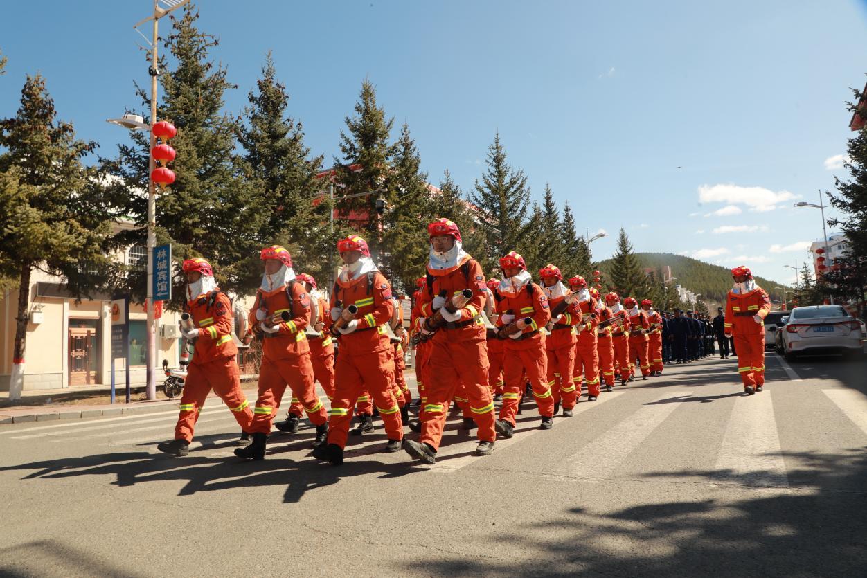 阿木爾林業(yè)局專業(yè)撲火隊員方隊徒步宣傳“五·六”森林火災(zāi)的慘痛教訓(xùn),提醒居民身在林區(qū)防火第一(王力 攝)