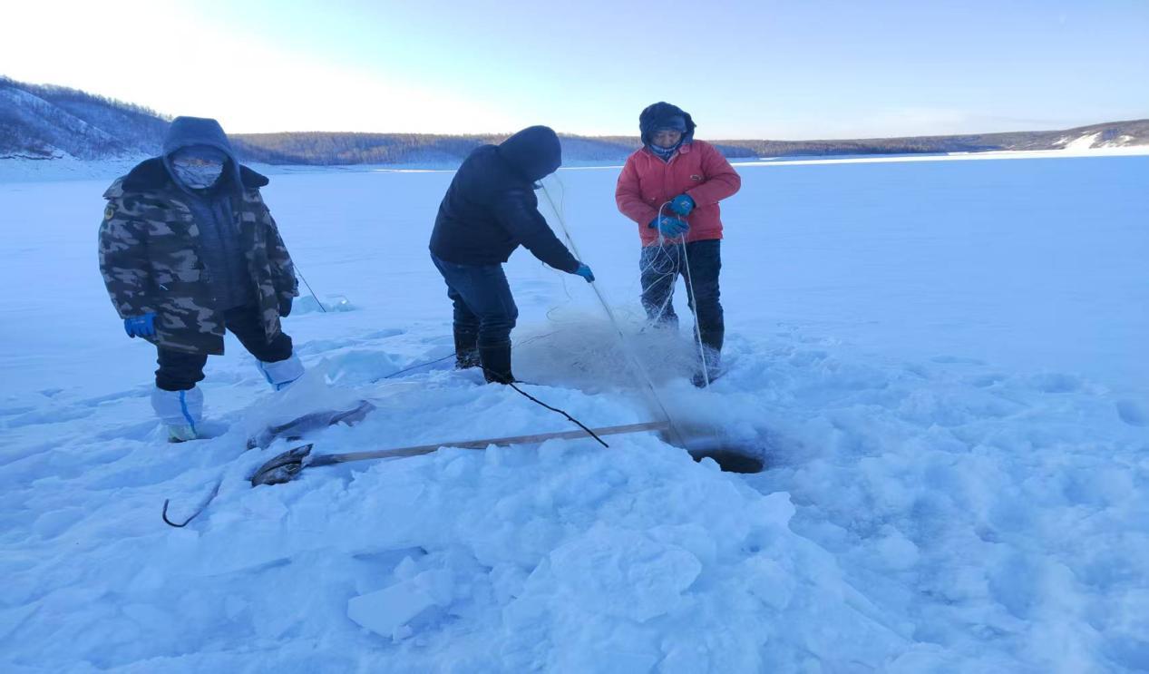 為確保首次冬捕成功,組建捕撈團(tuán)隊(duì),邀請(qǐng)經(jīng)驗(yàn)豐富的漁工指導(dǎo),從漁網(wǎng)鋪設(shè)、冰面鑿洞到捕撈作業(yè),每一個(gè)環(huán)節(jié)都精心部署、規(guī)范操作,最終實(shí)現(xiàn)首網(wǎng)豐產(chǎn)的喜人成果。