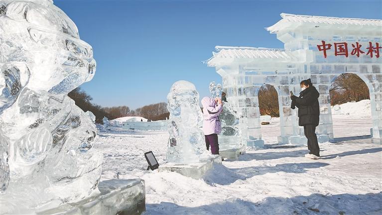 “我夏天在島上干活,冬天就在冰村忙活,一年收入穩(wěn)穩(wěn)當(dāng)當(dāng)?!备吡⒅娟种杆阗~,又指向遠處維護冰雕的村民身影:“大伙都有活兒干,村里熱鬧了,日子也跟著紅火。”